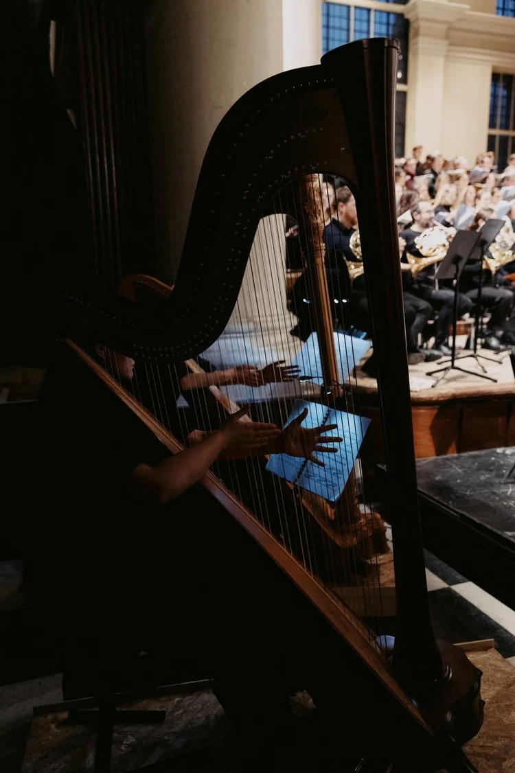 Mae Aisha yn perfformio mewn deuawd Telyn a Sacsoffon ar gyfer Digwyddiad Rhoddwyr LSO.